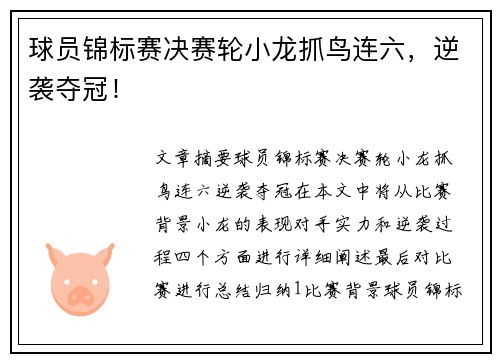 本文通过李昊桐挑战南非公开赛54洞夺冠努力追逐高尔夫新纪录为中心,从四个方面进行详细阐述。 1、李昊桐的高尔夫生涯 李昊桐自幼便展现出对高尔夫的天赋,多次在比赛中获得佳绩,被誉为中国高尔夫的未来之星...